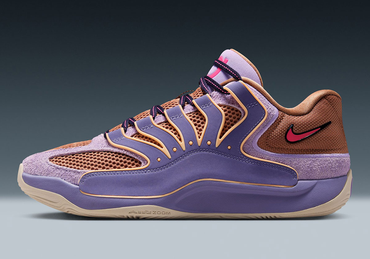 Earlier chapters of the Nike KD “B.A.D.” series were largely based on purple, but the upcoming KD 18 shares the spotlight with hits of Fire Pink and Hemp tan. Simply on a colorway standpoint, Nike hit one out of the park. The fact that these have such a warm connection to Durant’s personal life only adds to its appeal.