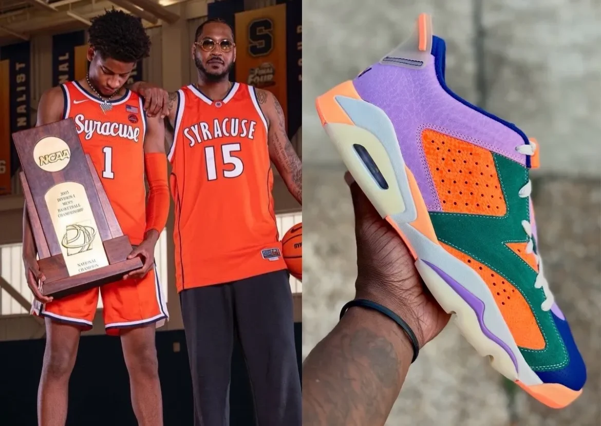 Carmelo Anthony may have retired, but the Anthony legacy with Jordan Brand continues. As the brand’s first major signee, Carmelo’s collection of rare Player Exclusives still stands among the best. Now, his son Kiyan Anthony is stepping into the spotlight with his own bold take: the Air Jordan 6 Low Kiyan Anthony PE.
