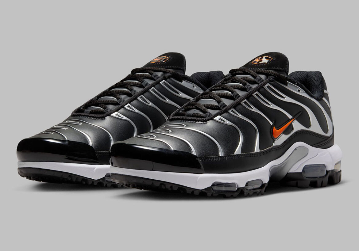 Though Mike’s signature may be the single most populous silhouette in that mix, the Nike Air Max line may overtake it if you expand the scope out to entire product families. A recent addition to the crowd, the Air Max Plus hasn’t missed a beat in transferring over to the performance side, already checking off many of its most significant colorways in this new life. The shoe at hand eschews those historical ties but remains just as stylish, leaning on an always-suitable mix of black, “Metallic Silver,” and white through most of its real estate. To round out, the usual slew of yellow accents dot the traction and TN branding, while a lone “Total Orange” Swoosh interrupts the quarter.