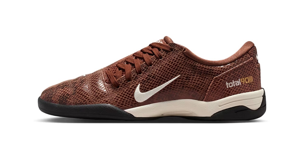 The upcoming women’s exclusive switches the football-inspired model’s leather build with brown snakeskin, adding a layer of texture to the shoe. Branding lands on the embroidered white swooshes on the panel, quilted toebox and heel. Other details can be found on the medial panel’s circular 90 logo and the Total 90 III tongue and ankle logos. The sneaker rests on a white midsole and black outsole, while matching brown laces tie them together for a cohesive finish.