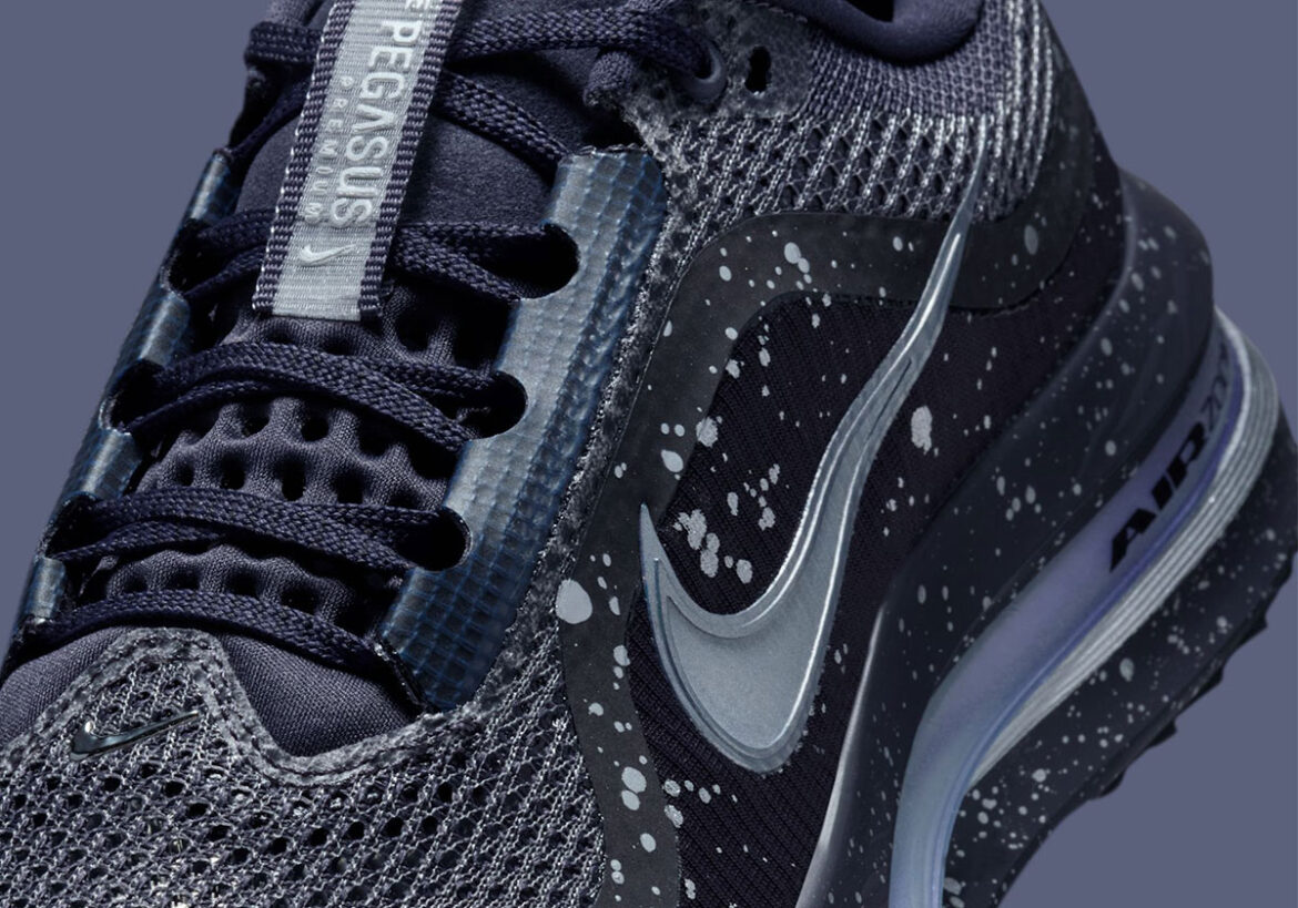 With dozens of looks for the Pegasus Premium in the rearview, we’ve begun to see some more experimental fare come to the sneaker, none more attention-grabbing than a Swarovski remodel. While not carrying the same luxe jewels, the “Cave Purple” Pegasus Premium at hand is a can’t-miss all the same. Mirroring the inky expanse of night skies, white speckles through the sole and the graphic mudguard/sidewall panel interrupt an overall nocturnal profile. For one last point of intrigue, the silhouette’s purple hues come to a bright conclusion by tinting the full-length Air Zoom unit with vivid lavender tonality.
