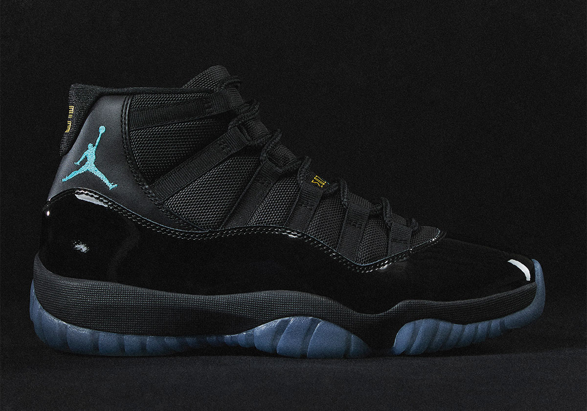 Divisive in its 2013 introduction, the Air Jordan 11 “Gamma Blue” pulls 90’s style contrast shades onto an otherwise nocturnal foundation, pinning its titular aqua onto the Jumpman brand, utilizing an adjacent, icy tone on the outsole, and sandwiching bright yellow in between, perhaps most impactful on the Air Jordan tongue text. For those who cherished that 2010s drop, no doubt part of the formulation was its status as easily the closest thing to an all-black Air Jordan 11 that the hobby had seen to that point. Though the “Cap and Gown” would eventually take that title come 2018, the same general sleek prompt will be issued anew for consumers at the tail end of Q4.