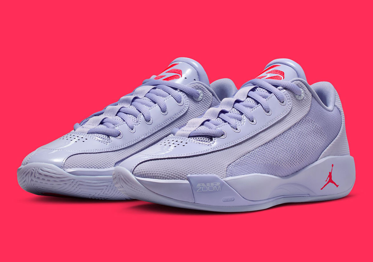 Joining a Jordan Luka 4 of the same theme among October 2025 Jordan releases is a Luka .77 dubbed “Hčerka,” the Slovenian word for “daughter.” While the Luka 4 features a “Flash Crimson” exterior, the outdoor-focused takedown model here opts for a softer pastel palette of “Hydrangeas/Amethyst Tint,” with “Siren Red” accents on the branded elements. If we’re being really technical, every Luka .77 features Gabriela’s influence — complete with a stitched heart on the inner tongue based on one of her own drawings.