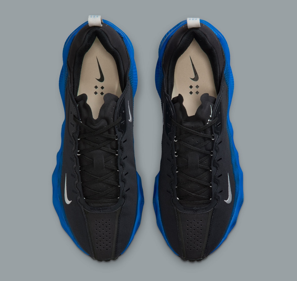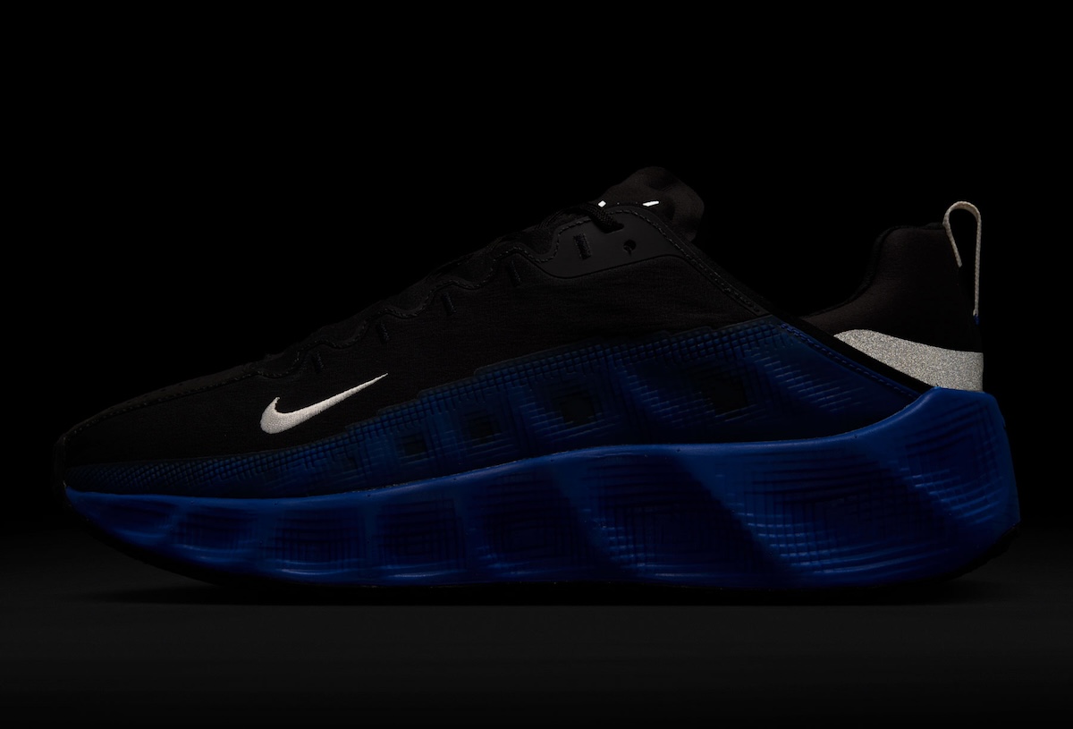 The upper is a simple black textile with perforations and some angular white mini Swooshes embroidered on the sides. The standout piece on the silhouette, however, is the molded Royal Blue midsole constructed with Nike ReactX foam that offers cushioned support and durable energy return.