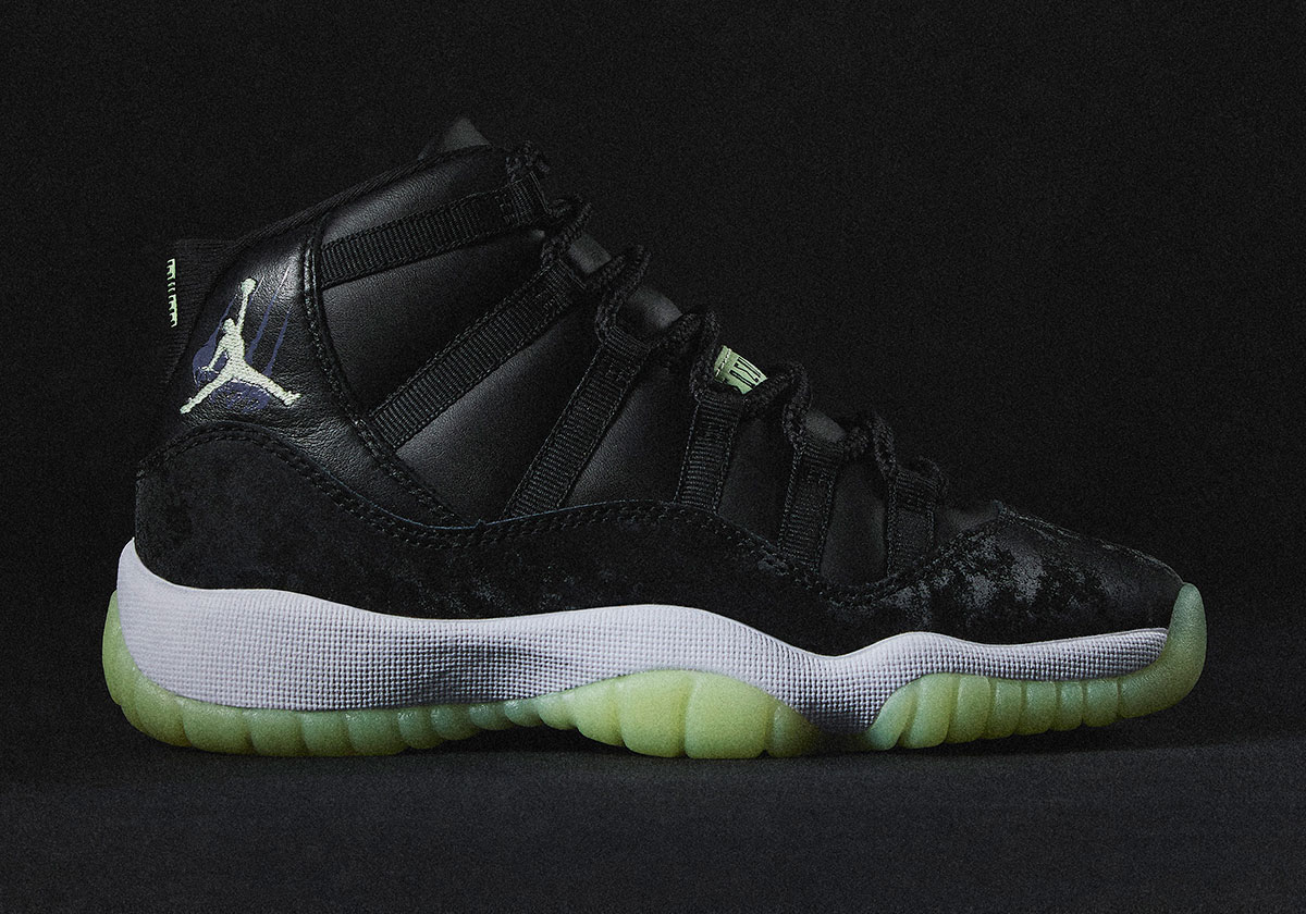 Continuing a strong run of Halloween-themed kids’ releases following last year’s “Black Cat” Air Jordan 1 Low, the Air Jordan 11 “Inner Beast” stands out with a glow-in-the-dark outsole and a black base composed of a smooth leather upper and a faded grey mudguard. Along with the luminous sole unit, another key detail comes by way of the Jumpman logos on the sides. Tying in with one of the year’s most significant Jordan retros — the “Black Cat” 4s, currently earmarked for a November release — this Air Jordan 11 features purple cat claw graphics beneath stitched green Jumpman logos.