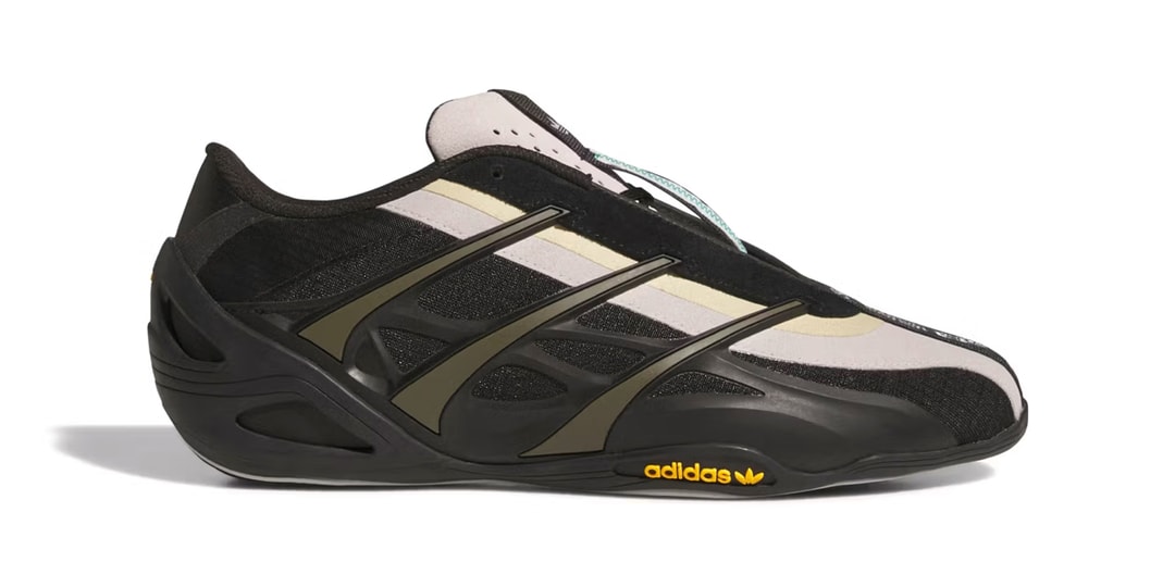 An official look at the Mercedes-AMG PETRONAS x Bad Bunny x adidas Adiracer GT further illustrates what to expect from the collaboration. A low-profile runner is partially covered by a TPU cage that uniquely creates the Three Stripes motif at each side of the shoe. A toe tag and the sockliner nod to the trio while the colorway combines black and off-white with a touch of yellow.