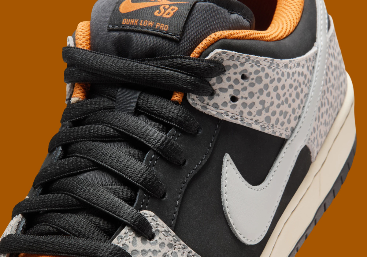Lo and behold, that PE is now set to see a public release. The Nike SB Dunk Low “Cobblestone,” shown here via official Nike images, features a compelling mix of safari print, brown suede, and black and grey nubuck. The sneaker is more aesthetically in line with 2020’s Nike SB Dunk Low “Safari”, an in-house release indirectly inspired by atmos’ 2003 collaboration on the Air Max 1.