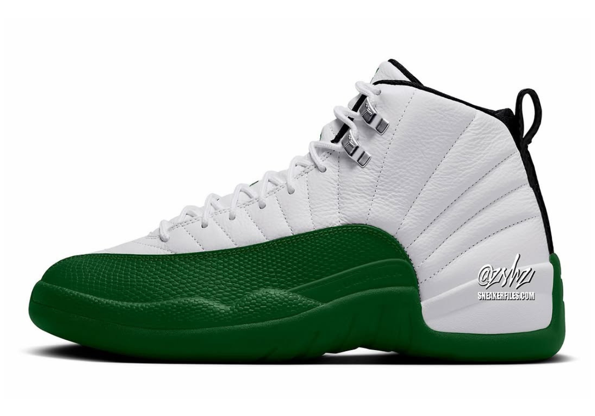 Reminiscent of Milwaukee Bucks team colors, the sneaker is expected to feature a green mudguard and outsole paired with a white leather upper, similar to the color blocking of the Jordan 12 “Taxi” (which is returning November 2025, by the way). A more accurate comparison, perhaps, is the Air Jordan 12 “Blueberry” from late 2024 — a new colorway with OG-minded color blocking that ended up being one of the biggest sleepers of that year.
