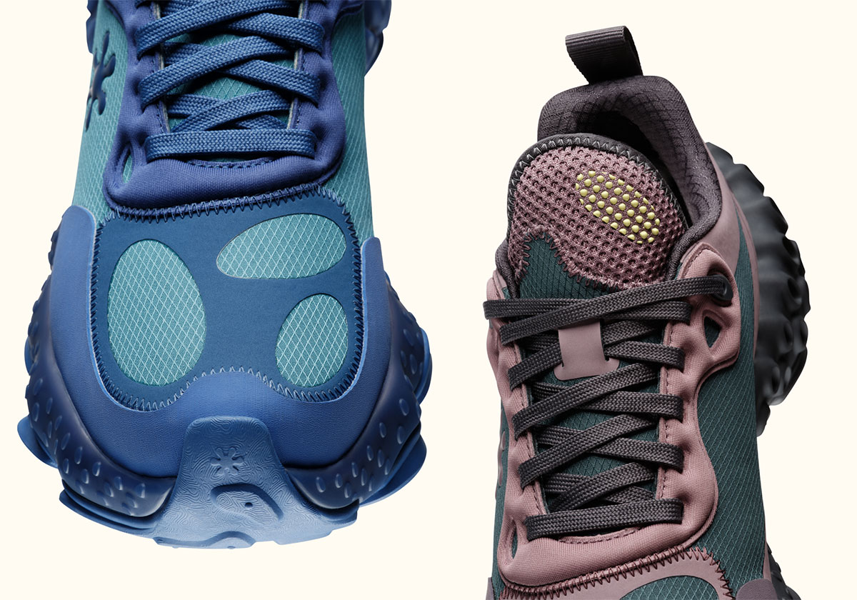 Teased consistently over the past months, the SPUNGE Osmosis is the debut silhouette for Bembury’s imprint. The performance focus of the model is on the pocked SQUISH TECH seen at the rear of the shoe. A proprietary foam is encased within the domed TPU cage for energy return and stability. Though the sole unit is the most obvious spot where Salehe’s love for the outdoors appears, it truly does tinge the entire design, including the oversized rubber toe cap and ripstop upper. Finally, we can’t escape the OSMOSIS without imbuing the design with the patented fingerprint pattern, making a subtle appearance etched into the outsole.