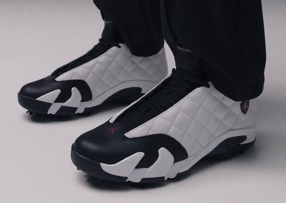 Michael Jordan’s drive spills onto the fairway, and the Air Jordan 14 Golf keeps pace. Our first look at the Air Jordan 14 Golf NRG “Bordeaux” shows a clean, performance-ready build that nods to the original.