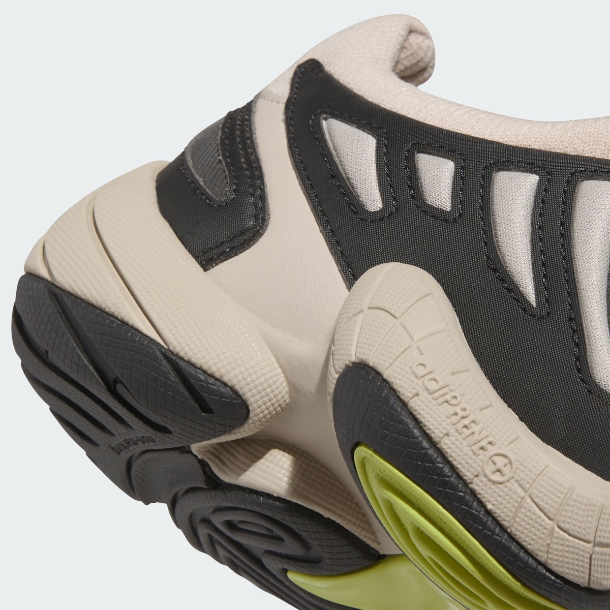 The Wonder Beige version uses warm neutral hues and features a beige mesh and neoprene base layered with eye-catching black TPU overlays. Bright pops of volt green accents on the midfoot and heel also add some character to the muted colorway. Inside, Adiprene+ cushioning on the insole brings nostalgic vibes similar to the original Intimidation sneaker collection.