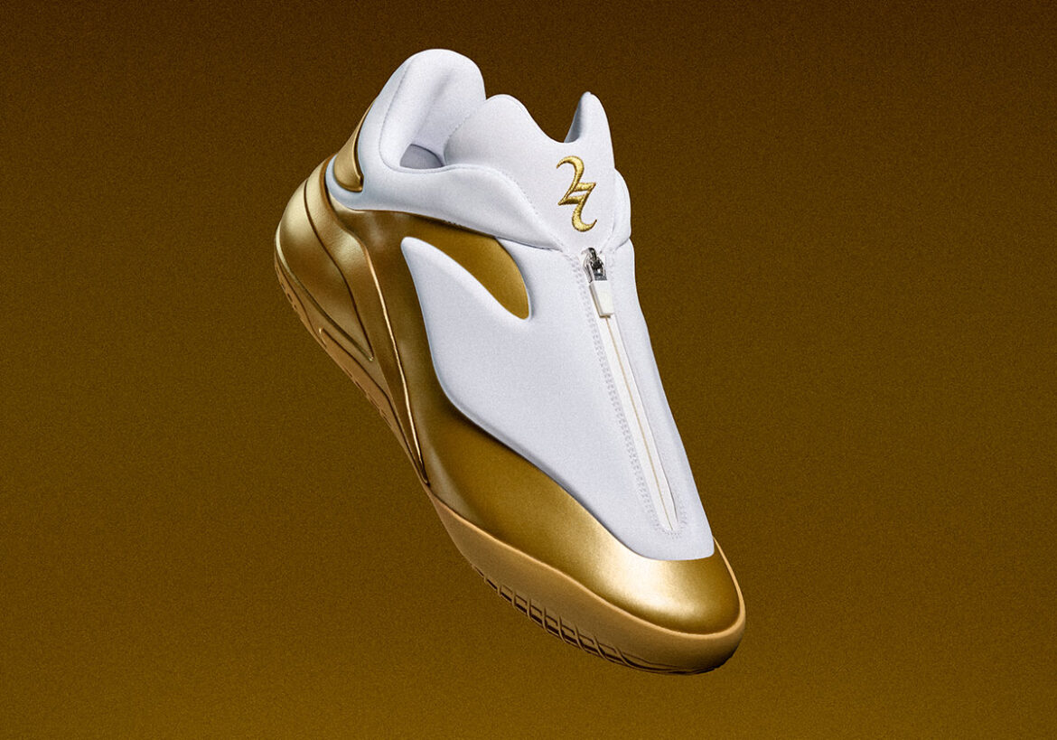 Converse has shared official images of the SHAI 001 “Banner” for this special night. This is the first SHAI 001 colorway to feature a two-toned color-blocking, boasting a championship-worthy blend of metallic gold on the bottoms and lower-half of the upper while a white floods the molded upper, ankle collar, and interior. Shai’s inter-locking double-S logo appears in gold on the white tongue.