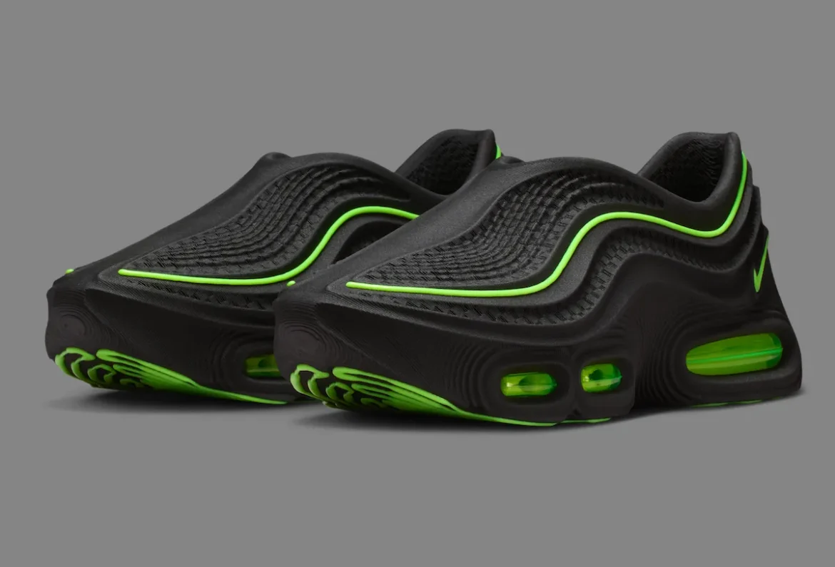 Sporting a sculpted, lace-less upper, the silhouette borrows key elements from the Air Max 1000 and marries it with a full-length Air unit from the legendary 95. Rhythmic grooves and patterns animate the 3D-printed build, nodding to Sergio Lozano’s original layered masterpiece while bold Volt accents electrify the sleek, dark frame. That bold contrast also helps the sneaker sport a clear “digital-meets-retro” aesthetic that will not go unnoticed.