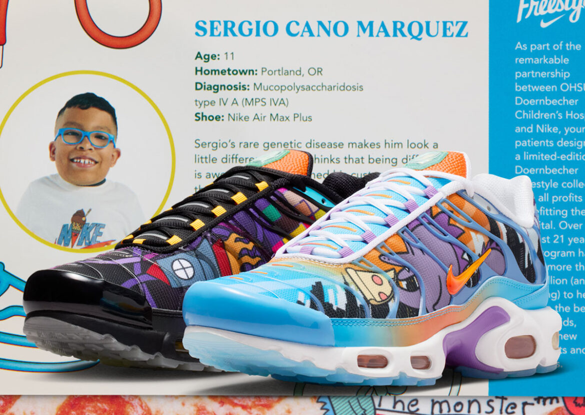 This time around, the remixer is Sergio Cano Marquez, who was born with mucopolysaccharidosis type IV A, and he’s bringing a world of imagination to the Air Max Plus.