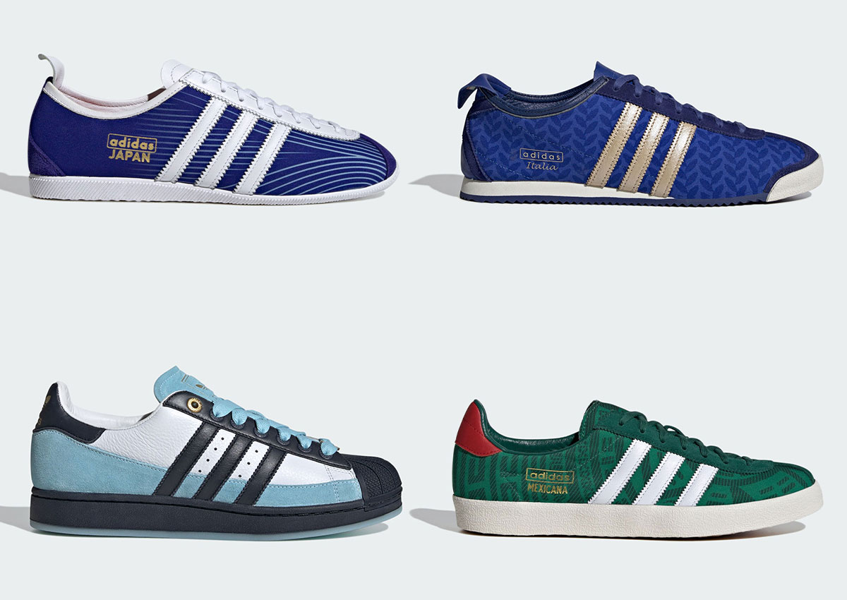 The collection features 4 shoes in total, the Superstar Argentina, adidas Japan, adidas Mexicana and adidas Italia.