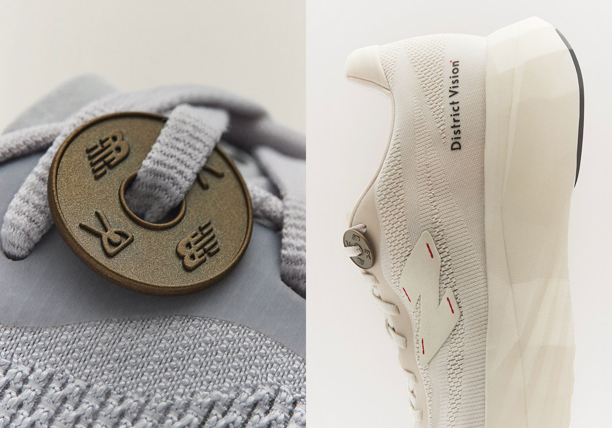Following a collab on the New Balance MT10 trail runner earlier this year, District Vision and New Balance are headed back to the road with tasteful touch-ups of the FuelCell SuperComp Elite v5, the Boston brand’s most advanced race day shoe ever. District Vision’s signature style brings delicate, small “N” logos to each side, attached to the base by four strings of red fabric. Each shoe includes a removable co-branded coin medallion, inspired by a Japanese good luck token given to District Vision co-founder Tom Daly before a marathon in 2014.