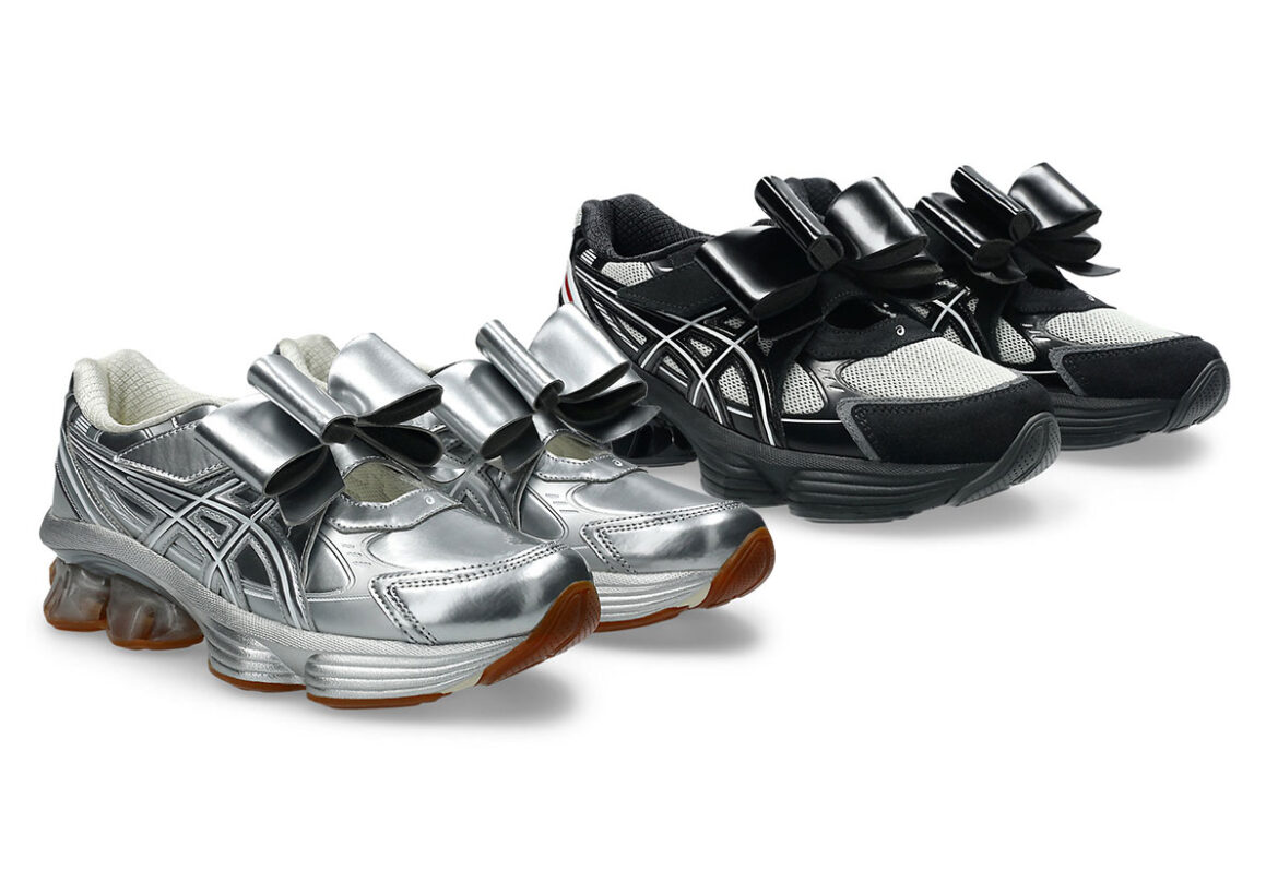 One of the more freshly minted of that vertical is the ASICS x SHUSHU/TONG partnership, teeing off the join-up with the Shanghai brand by way of a lacey takeover of the ASICS GEL-Kinetic Fluent. For their follow-up, the same model remains in focus. Part of the intrigue with the inaugural edition came from the contrast between the unmissable sportiness of the parent silhouette, either for its throwback chrome build or its visible underfoot cushioning, and the womenswear company’s more delicate touch. It’s only right that the two double down on the latter to make that interplay more pronounced, now shifting the trainer into a mule by chopping out the lace unit, replacing it with an oversized bow to (literally) bridge the gap left over.