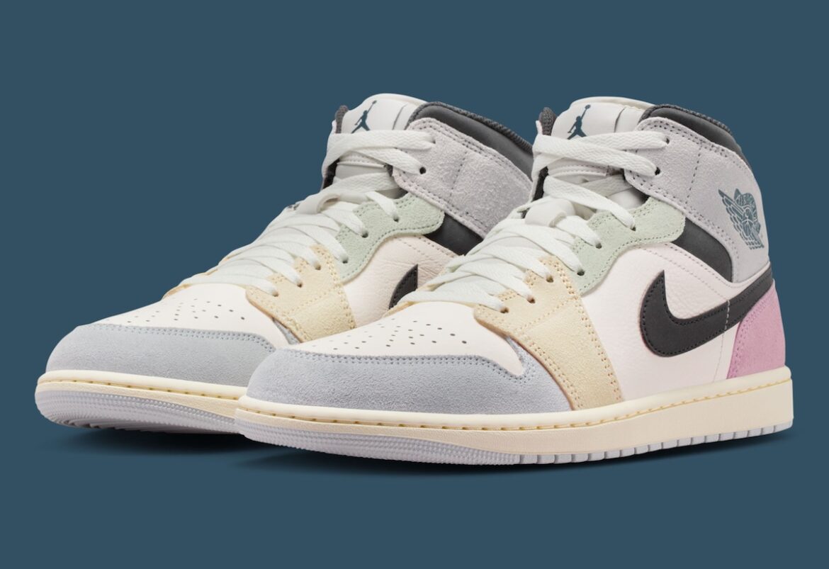 The Air Jordan 1 Mid “Sail/Jade Aura” brings a soft spring vibe from the start. It follows the style of past seasonal AJ1 drops while adding a new twist.