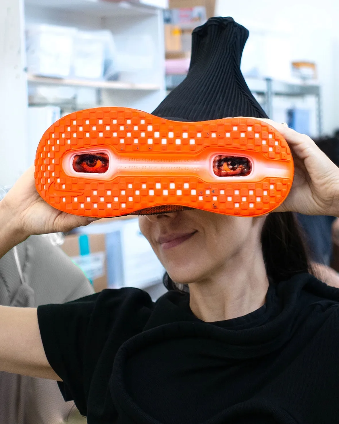 Small details shape the narrative further. The tan sockliner nods to classic Nike packaging, while the enlarged AIR lettering and black Swoosh echo familiar era-specific branding. Hidden inside the outsole are printed eyes positioned in the forefoot and heel windows, adding a playful twist that aligns with Baumeister’s surrealist hints. This approach fits today’s era of couture-leaning runners, seen recently in Swarovski’s embellished models and other high-fashion collaborations.