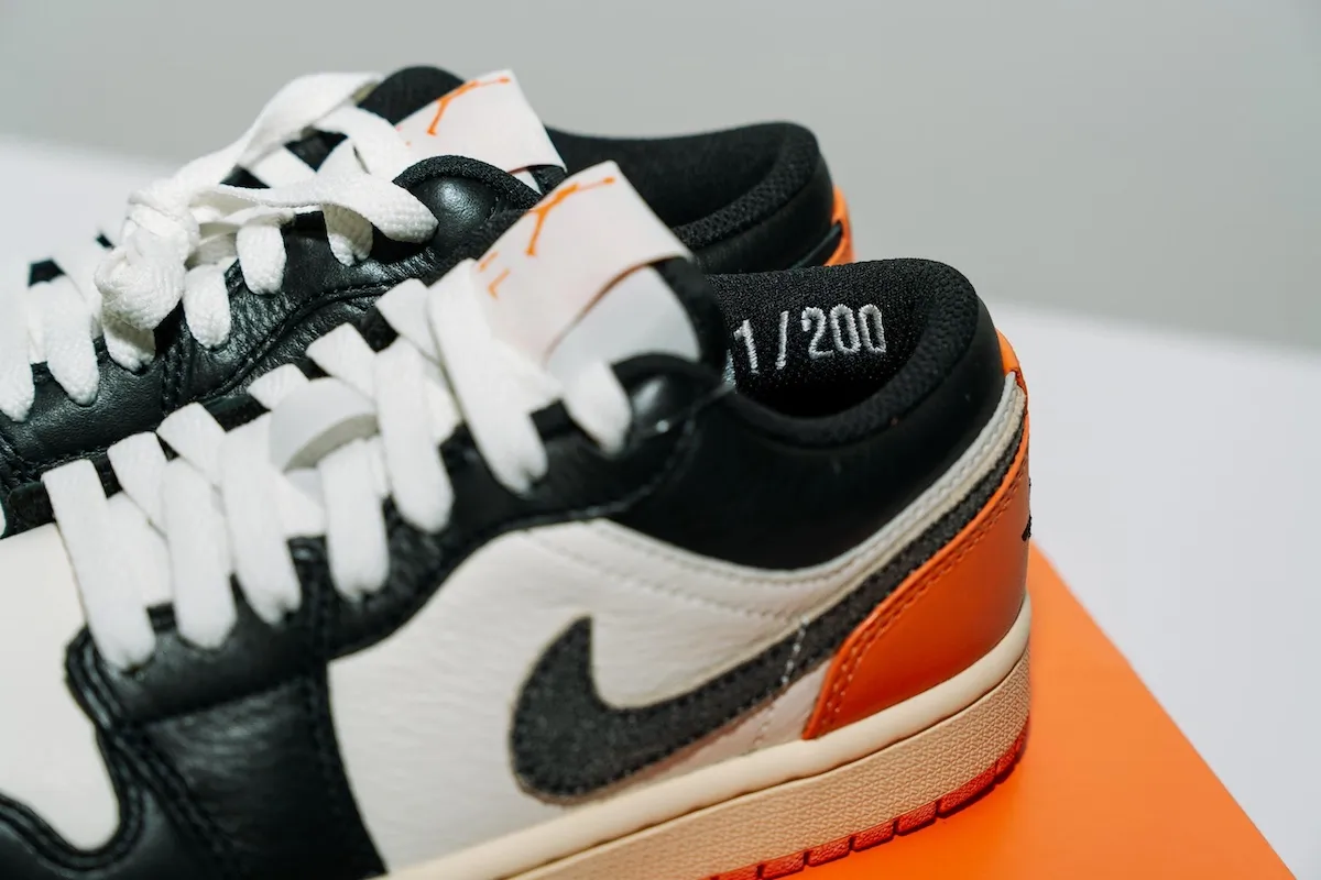 Details drive the story forward. “Never Not Working” appears on the tongue in handwritten script inspired by Michael Jordan’s signature. Each pair is individually numbered out of just 200, instantly placing it among the rarest Air Jordan 1 Lows produced. Mismatched heel embroidery features the Wings logo on one shoe and the EKIN mark on the other.