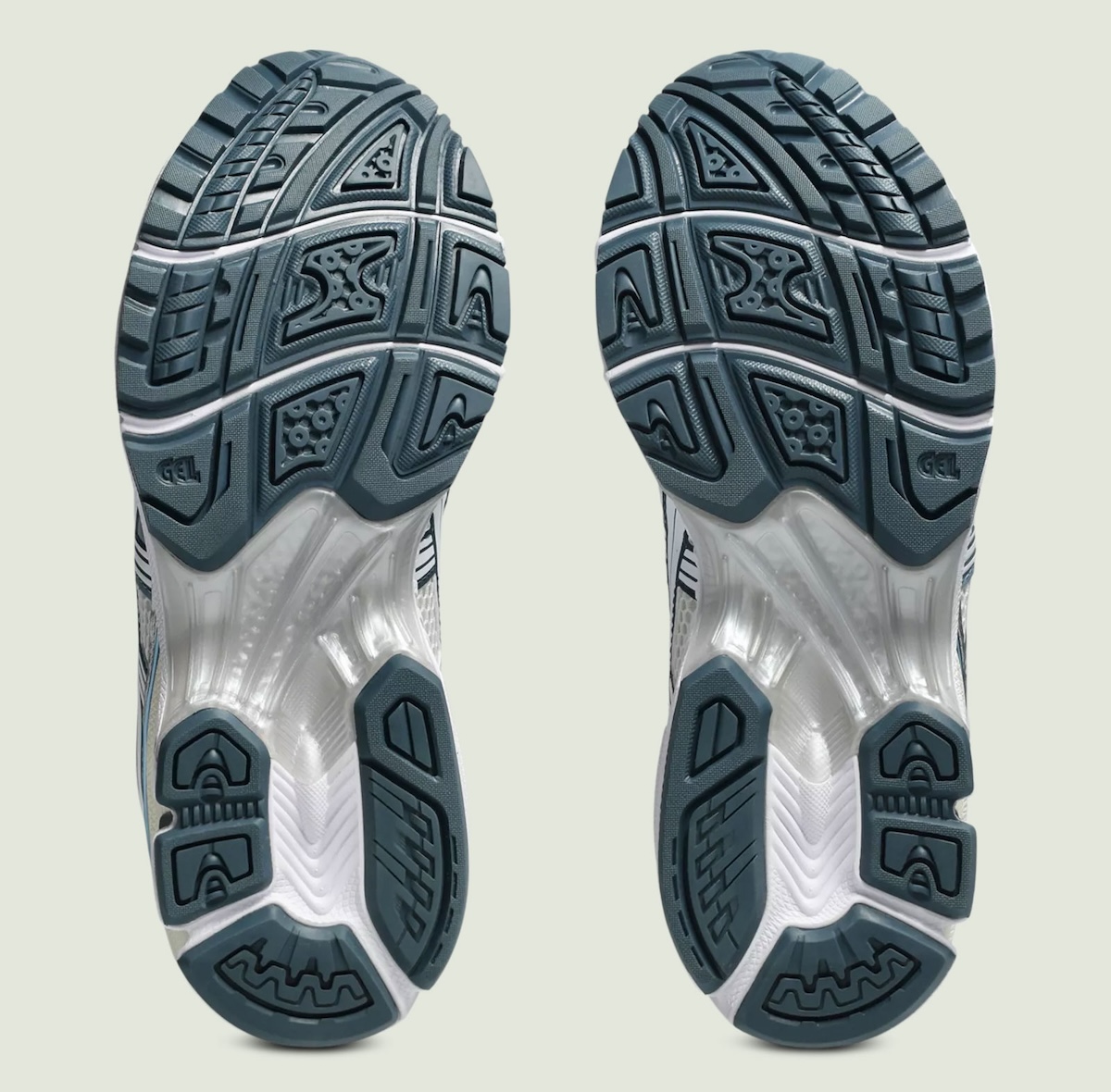 Underfoot, a white foam midsole pairs with exposed GEL cushioning in black, delivering the segmented look fans expect.