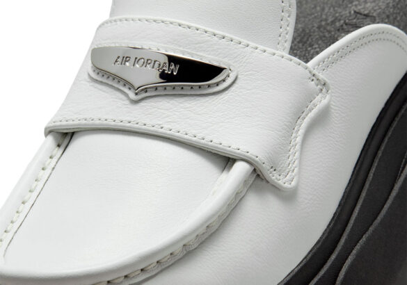 Still working through its initial year on the shelves, the Air Jordan Mule has kept to a rather simplistic “default” look to date, pushing monochromatic aesthetics wholeheartedly (with the exception of the trendy “Cow Print” that helped kick off that run). It’s not too radical of a break, but outfitting the pair at hand with white leather up top and a chunky black platform underneath nonetheless marks an advancement, finished with a silver bangle across the strap.