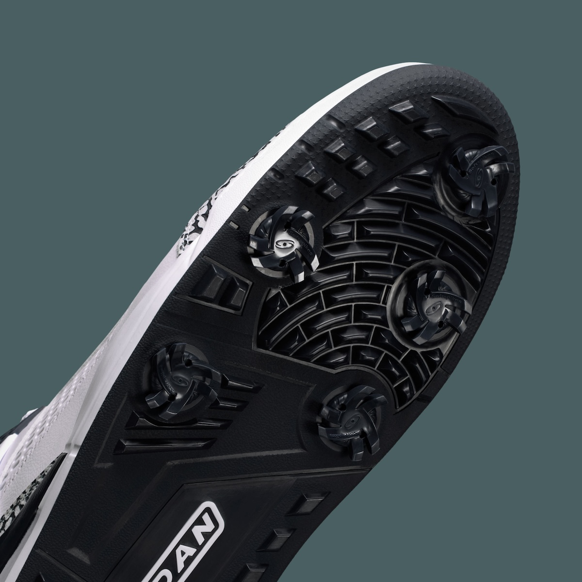 Underfoot, the transformation becomes clear. The Air Jordan 3–inspired outsole now features a reworked traction pattern designed for walking and stability across 18 holes. This choice reflects Jordan Brand’s growing comfort merging lifestyle nostalgia with legitimate golf performance.
