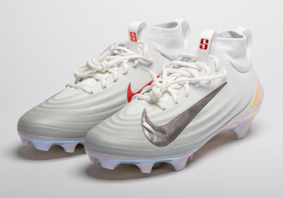 In the wake of that, we’re left to ask: Is it the shoes? The former Duck nodded to a once-classmate with his on-field wear in Week 16, lacing up a cleat based on the Nike Sabrina 3 “Most Valuable Mascot.” In contrast to some “cleatified” crossovers that have dominated the gridiron this year, this obviously doesn’t adapt Ionescu’s latest signature from a hardware perspective, instead sticking almost unfettered to the base Nike Vapor Pro 1. The colorway, replete with alternating silver and red Swooshes and fiery “S” brands, does much of the heavy lifting in this Oregon meets Oregon concept. Notably, more than just a shared alma mater, Herbert and Ionescu were of the same graduating class, uniting two of the best currently going in their respective pursuits and providing a campus lookback.