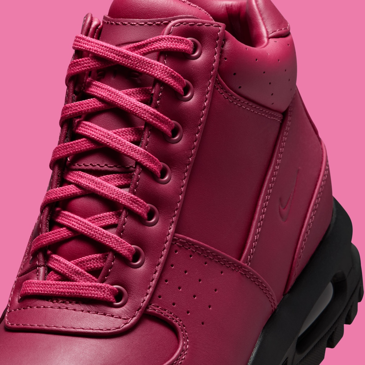 This Sweet Beet/Black edition is wrapped in smooth cherry red leather, giving the boot a polished, uniform finish. Clean paneling and reinforced stitching nod to its outdoor lineage, while subtle collar perforations soften the silhouette. Compared to earlier wheat-toned Goadomes, this pair feels more expressive without losing structure.