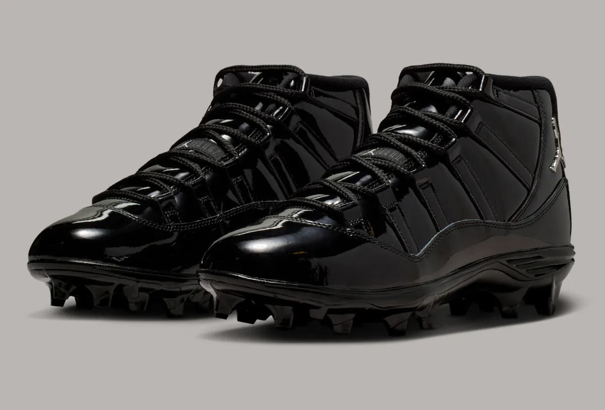 Jordan Brand’s football dominance marches on with the unveiling of one of the brand’s most recognized silhouettes. The Air Jordan 11 “Black Patent” Cleats translate the hardwood legend into a streamlined performance design engineered for speed and power. Rather than reinvent the formula, the cleat nods to the model’s DNA with a more disciplined, blackout take.