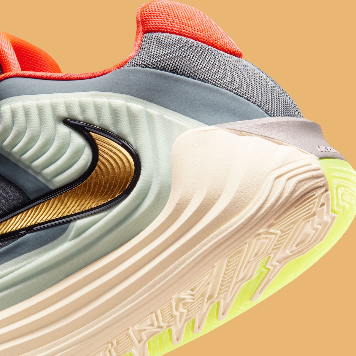 Underfoot, the Coconut Milk midsole carries sculpted lines that echo Giannis’ downhill style. Cushioning appears substantial, while the neon-tinted outsole introduces grip-focused traction. It’s a design that balances agility with stability, a familiar Freak formula refined further.