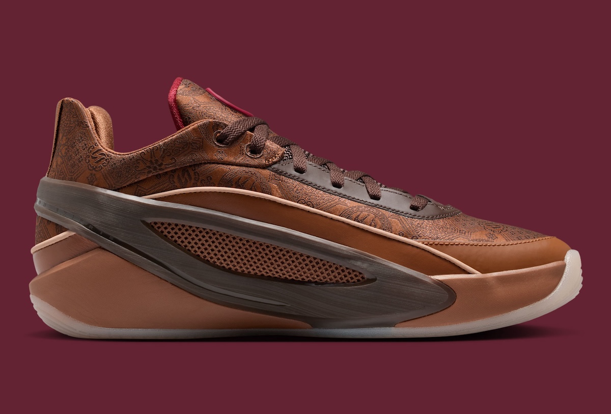 Performance remains untouched. The low-cut frame, responsive cushioning, and court-focused tooling still support Luka Dončić’s controlled pace and sharp direction changes. That balance between storytelling and function reflects Jordan Brand’s current design approach.