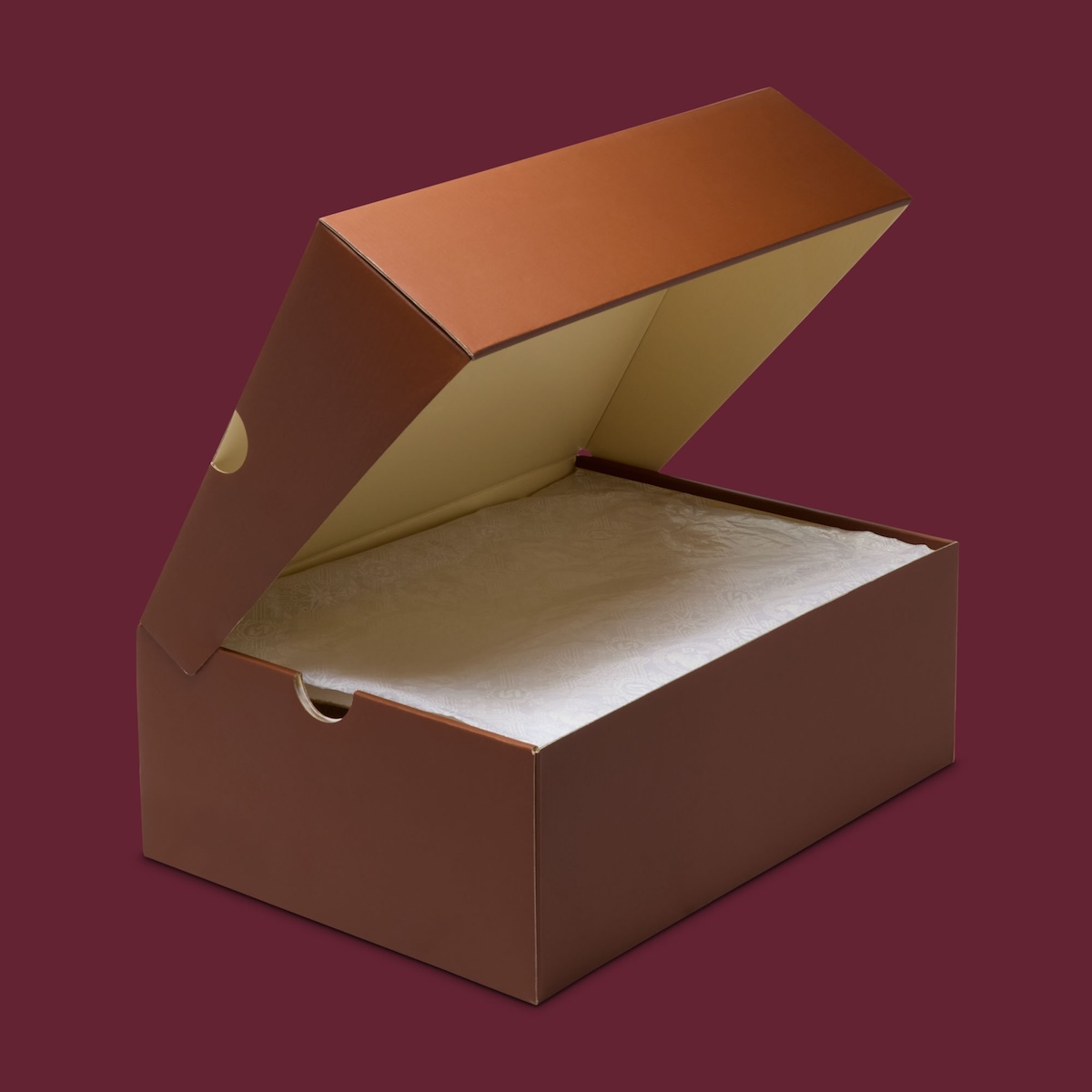 With its design focused on symbolism, the upper uses warm brown tones to ground the color scheme while layered patterns are used to reference Lunar New Year symbolism associated with rejuvenation and luck. The color red is used more sparingly to evoke ideas of prosperity.