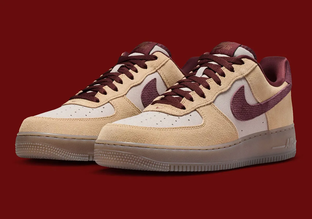 Here, Nike establishes a strong work-wear vibe; with tans and dark burgundy tones entering the mix, we easily envision these alongside some vintage Carhartt or some double-knee painter pants. A closer inspection of this release reveals micro-perforated suede on the Swoosh and back-tab, while suede overlays are stitched over a canvas base for that undeniable rugged aesthetic. Dark gum soles complete the look.