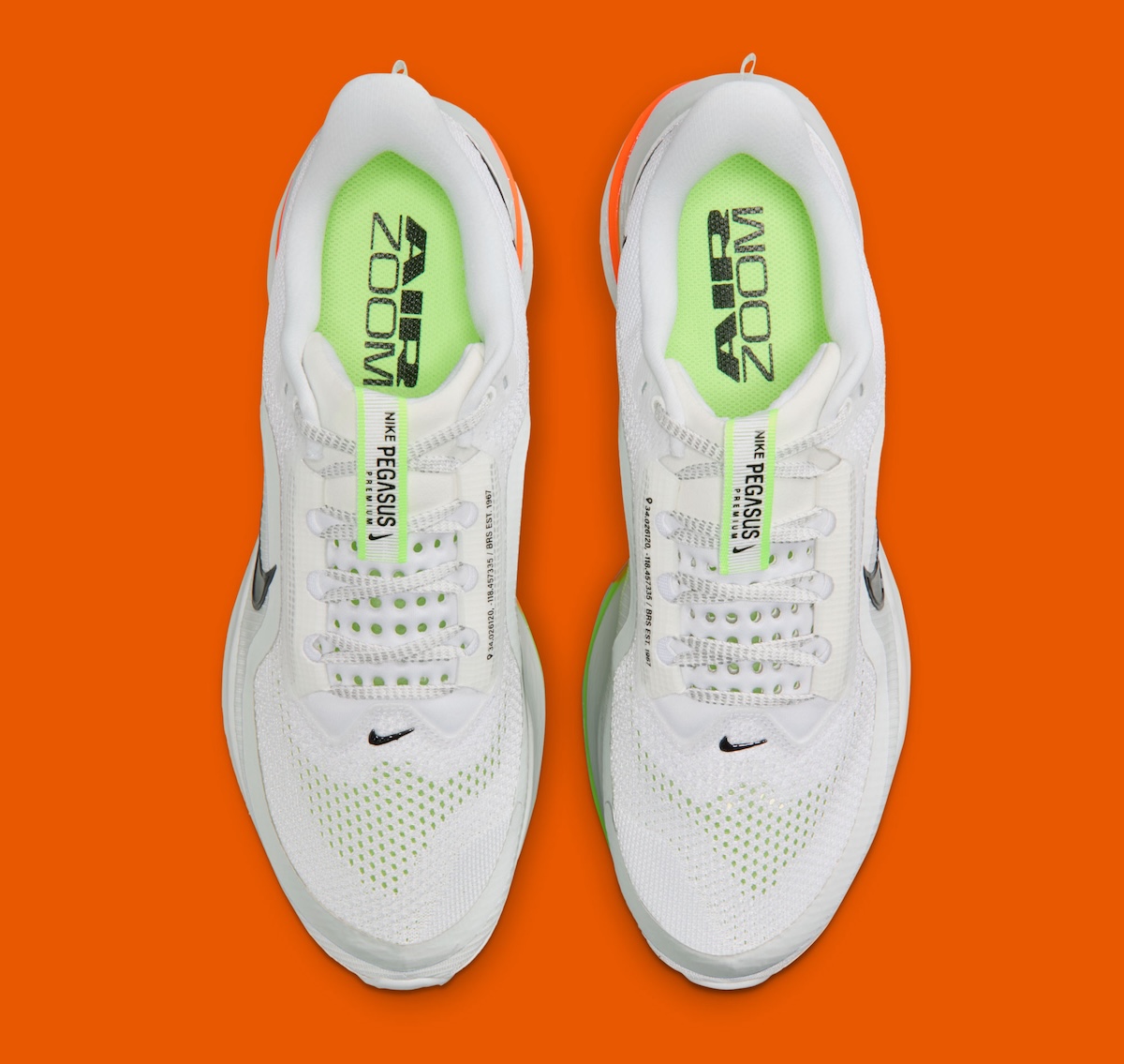 Underfoot, the Pegasus Premium balances ZoomX and ReactX foam with a full-foot Air Zoom unit in between. The setup favors responsiveness over softness, signaling Nike’s evolving take on premium daily trainers. Reflective trim circling the upper also adds real-world utility for night runs.
