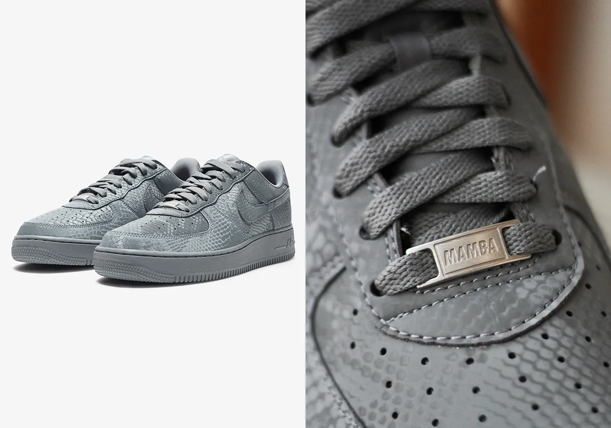 The Mamba estate and the Swoosh have built out the scaly Uptown as a tacit signature of the line, far more easily accessible than earnest Kobe performance kicks. Creatively, each of the AF1s we’ve seen to date (with the exception of the “Frobe” or “Soft Yellow,” distinct for its Protro titling and tooling) have leaned on monochromatic palettes, just as easily reached for as found on the shelves. That atmosphere continues with the latest pair to trickle out, a wall-to-wall neutral grey that maintains the material hallmarks of the line as well as namesake dubraes and alternating “8/24” heel stamps.