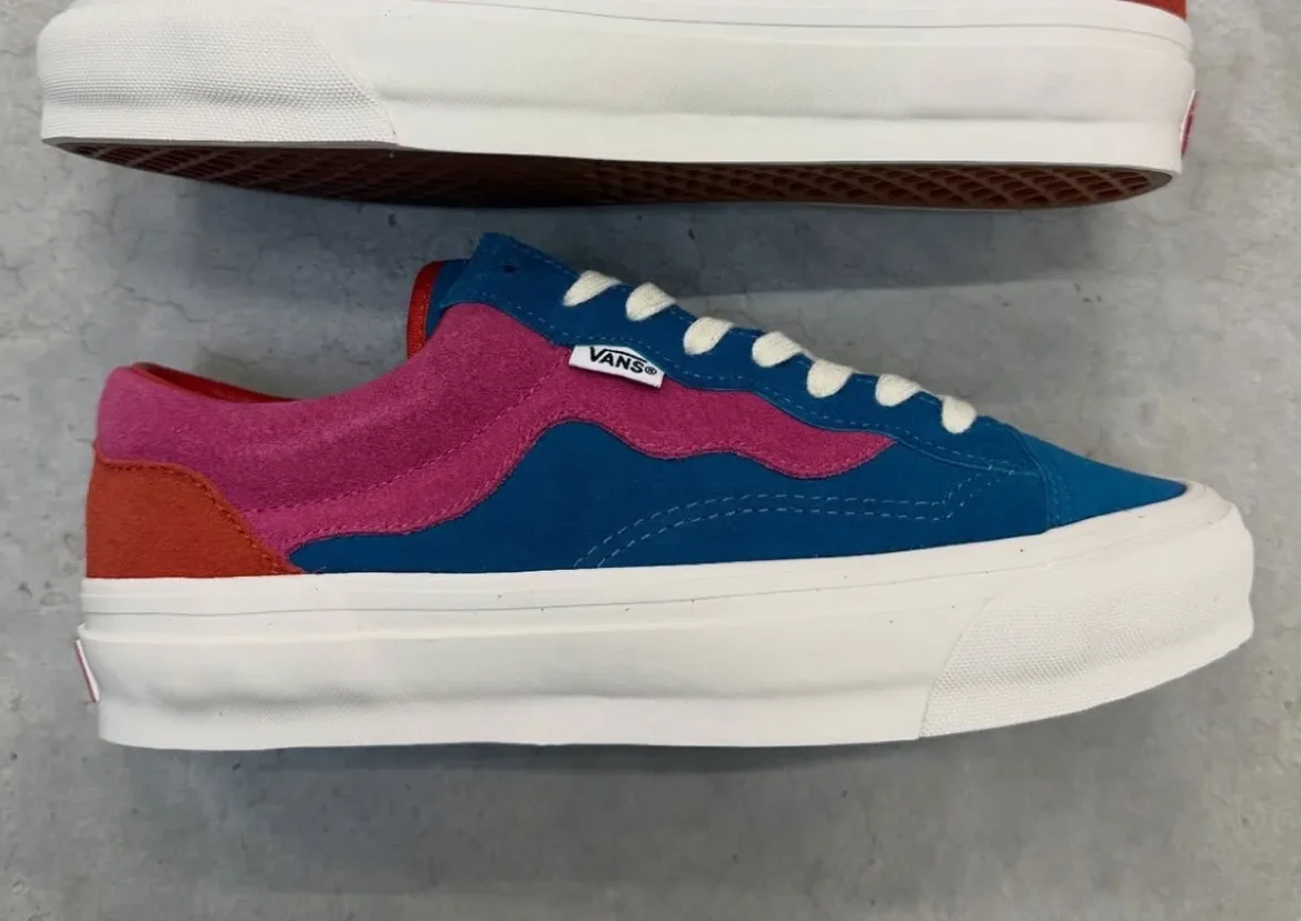 The OTW Old Skool 36 becomes a canvas for Parra’s unmistakable visual language. Wavy suede overlays replace the traditional SideStripe, creating movement across the upper. Deep teal blues meet saturated pinks and burnt orange accents, echoing palettes Parra has revisited throughout his art and footwear history.