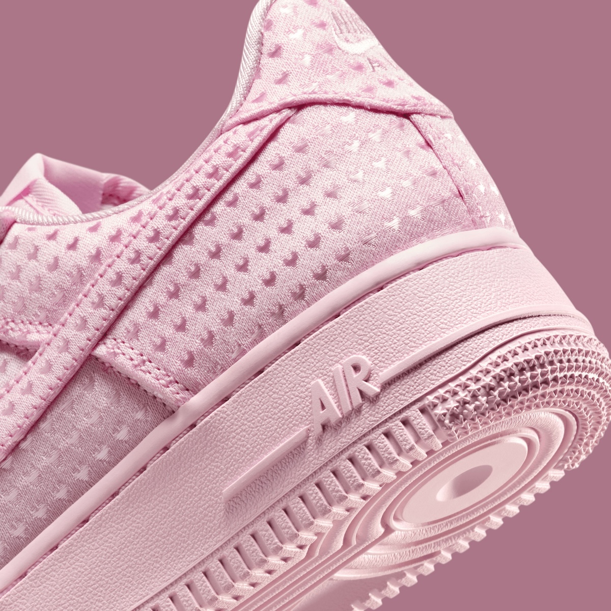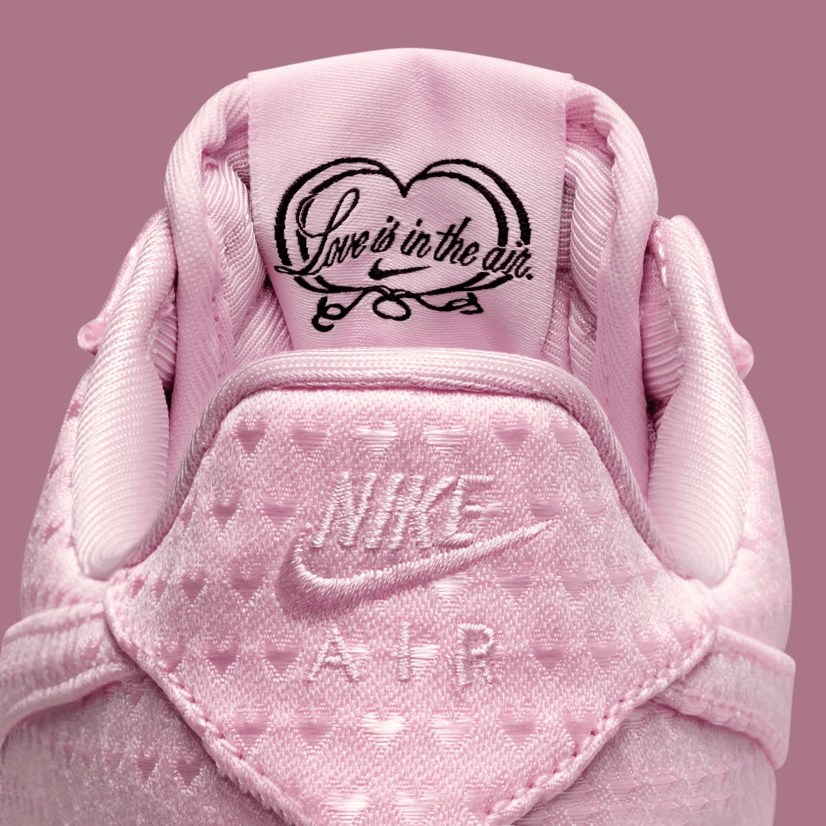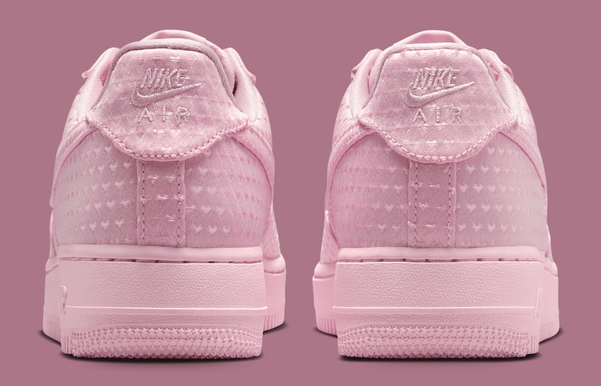Details do the heavy lifting here. A hidden “Love Is In The Air” tongue graphic and a removable heart-shaped locket charm nod to past Valentine’s Air Force 1 releases. Compared to louder editions from earlier years, this pair feels more refined and wearable. Tonal Swooshes, embroidered Nike Air branding, and a matching sole keep the palette controlled.