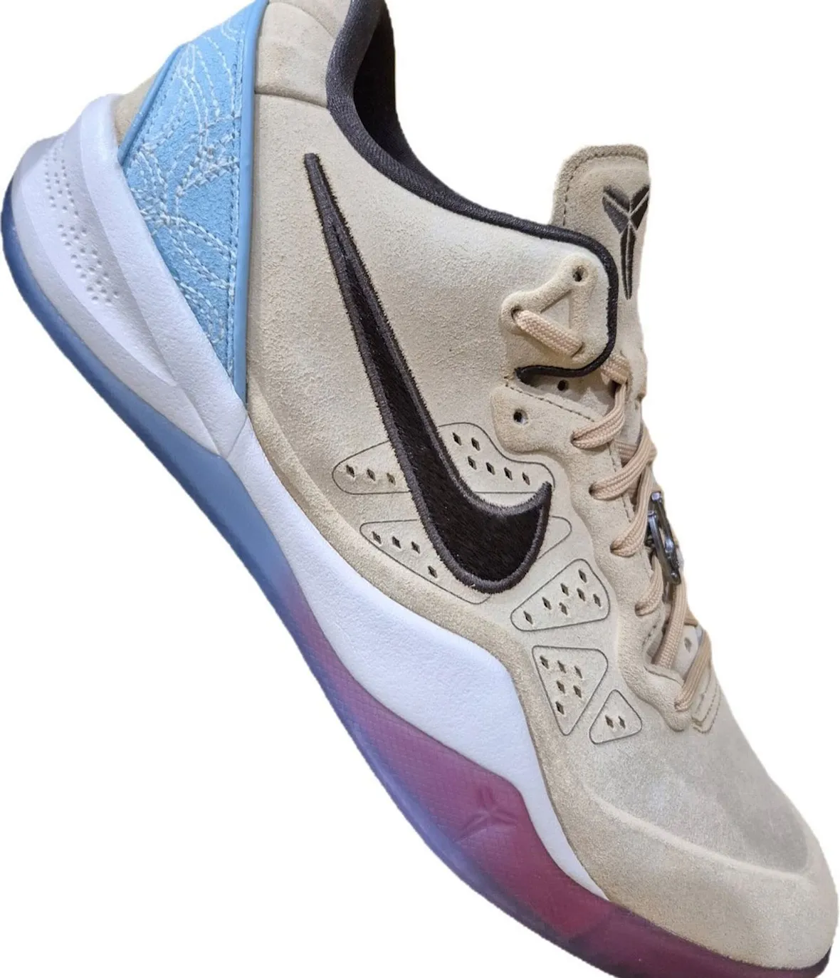 Unlike the original Kobe 8, this EXT version leans into texture and restraint. A Light Orewood Brown suede upper establishes a muted base, while molded overlays reinforce structure across the toe and eyelets. Baroque Brown pony hair Swooshes and lining add depth, giving the silhouette a tactile, almost heritage feel.