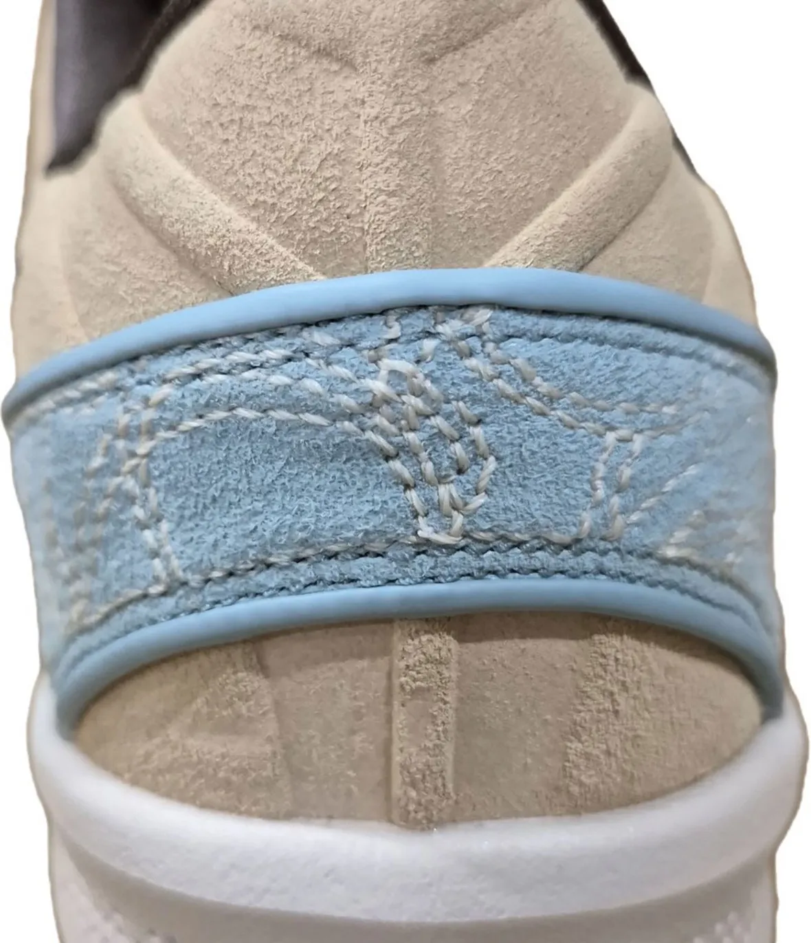 At the heel, Ocean Cube suede replaces a traditional counter, stitched in white for contrast and clarity. Underfoot, a subtle Ocean Cube to Red Stardust gradient outsole introduces color without disrupting the earthy palette. Horseshoe-shaped metal lace dubraes quietly anchor the Year of the Horse theme.