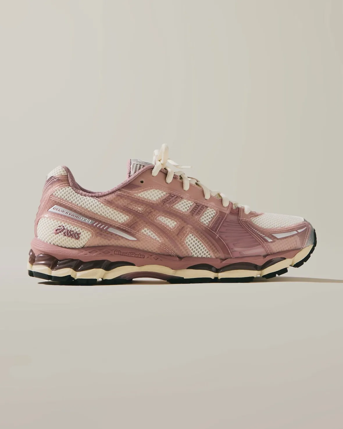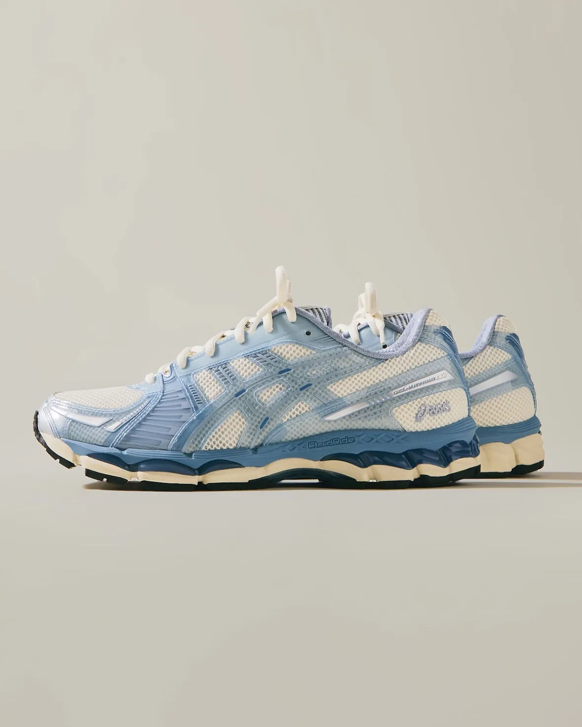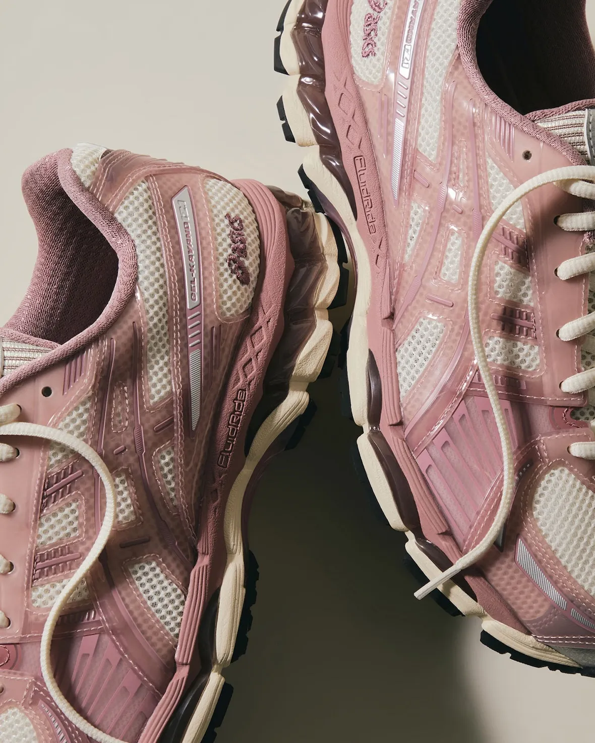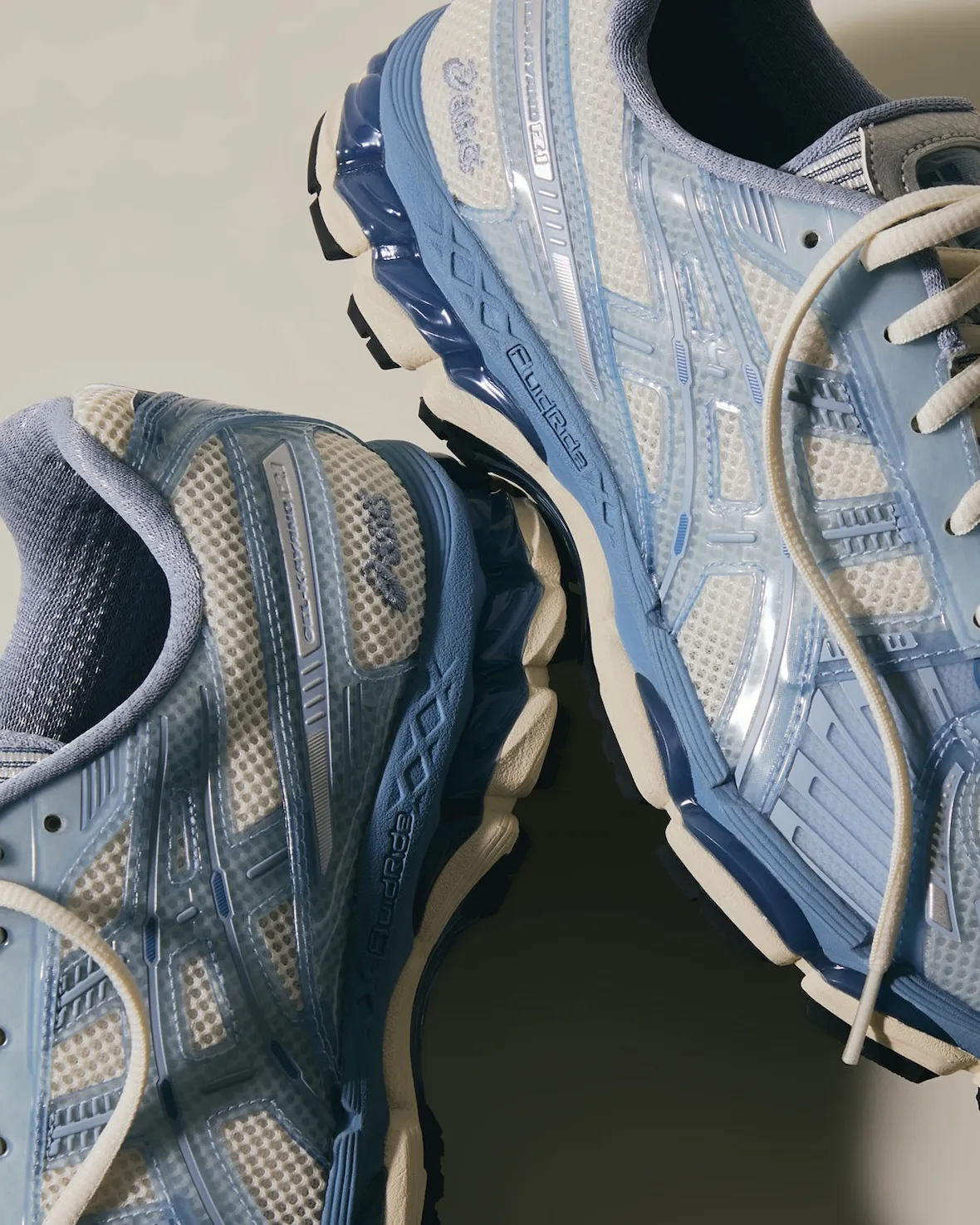The silhouette choice feels deliberate. KITH helped bring the GEL-Kayano 12.1 sneaker back before its wider ASICS return, giving this moment added continuity. Design execution stays restrained, favoring cream and silver foundations with pastel accents. Subtle brown, soft blue, and muted pink tones flow through translucent overlays and GEL cushioning, keeping the palette wearable.