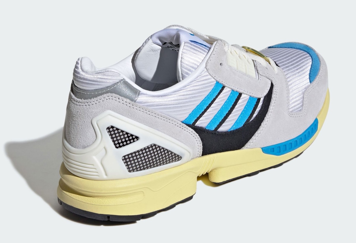 Underfoot, the ZX 8000 tooling remains untouched. A yellowed midsole adds an archival feel, while the visible Torsion System reinforces the model’s performance DNA. A “Made in Germany” lace tag completes the execution with purpose.