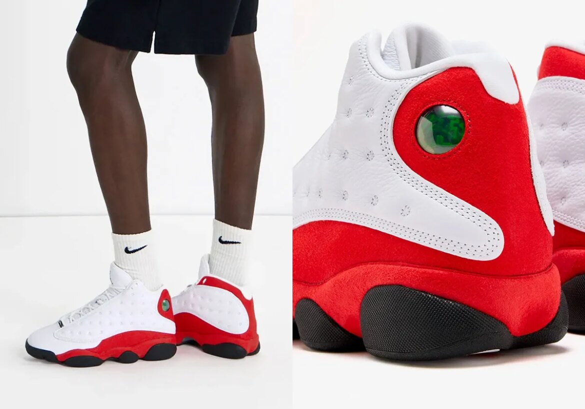 The “Chicago” 13s feature a white leather upper and tongue, True Red suede around the heel and lower sides, and a True Red/Black midsole. Seasoned collectors might notice that the red color is a touch brighter here than on previous retros. The sneaker has released a total of four times since its inception, first in 1998, again in 2010 and 2017, and now in 2026. The Air Jordan 13 is widely regarded as one of the most comfortable retro models in the Air Jordan lineage and features a design inspired by MJ’s “Black Cat” persona, complete with a holographic eye on the collar and a paw-shaped outsole.