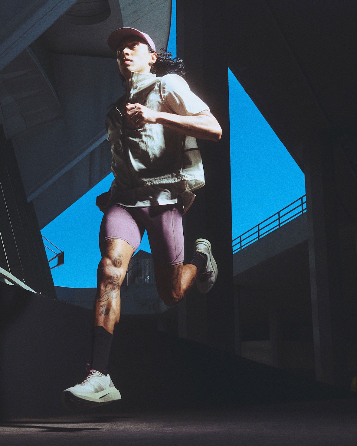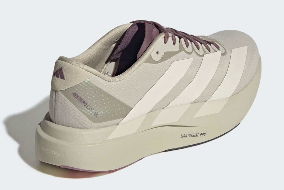 Faded purple accents on the tongue, laces, and heel outsole suggest a quiet nod to the jacaranda blooms that transform the city each spring. That seasonal reference adds emotional weight without disrupting the shoe’s clean balance. It’s a design choice that feels deliberate, not decorative.