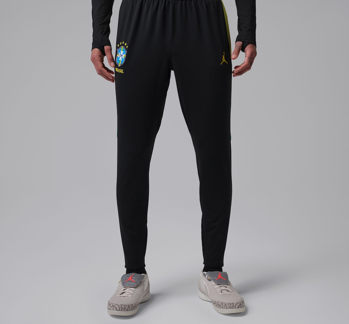 At the core are flight jackets and matching pants stamped with both the Jumpman and the Brazilian Football Confederation. This partnership echoes Jordan Brand’s long history of merging sport and culture, similar to its past global football capsules. The execution feels intentional, not decorative.
