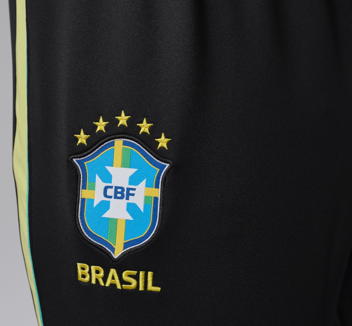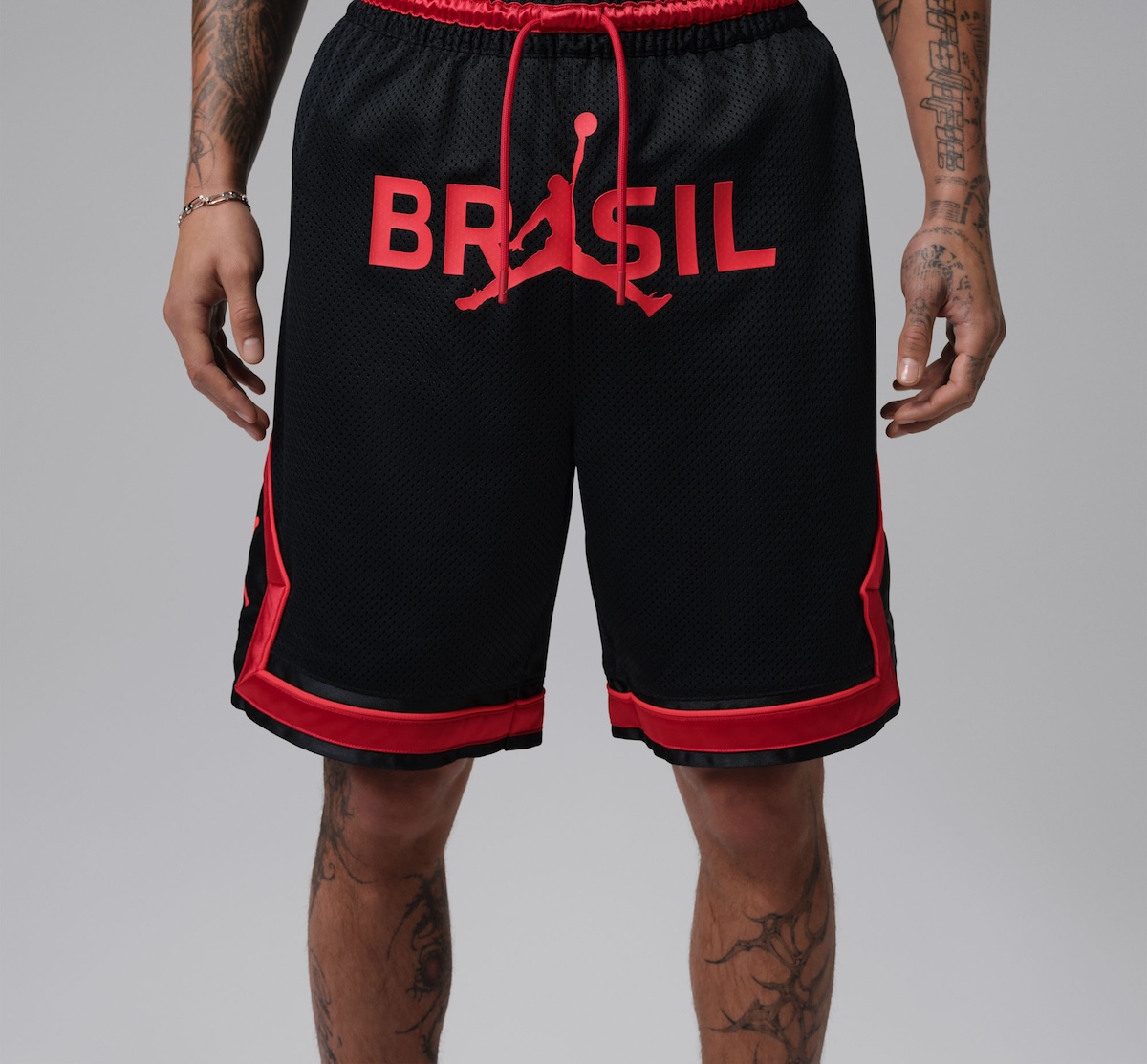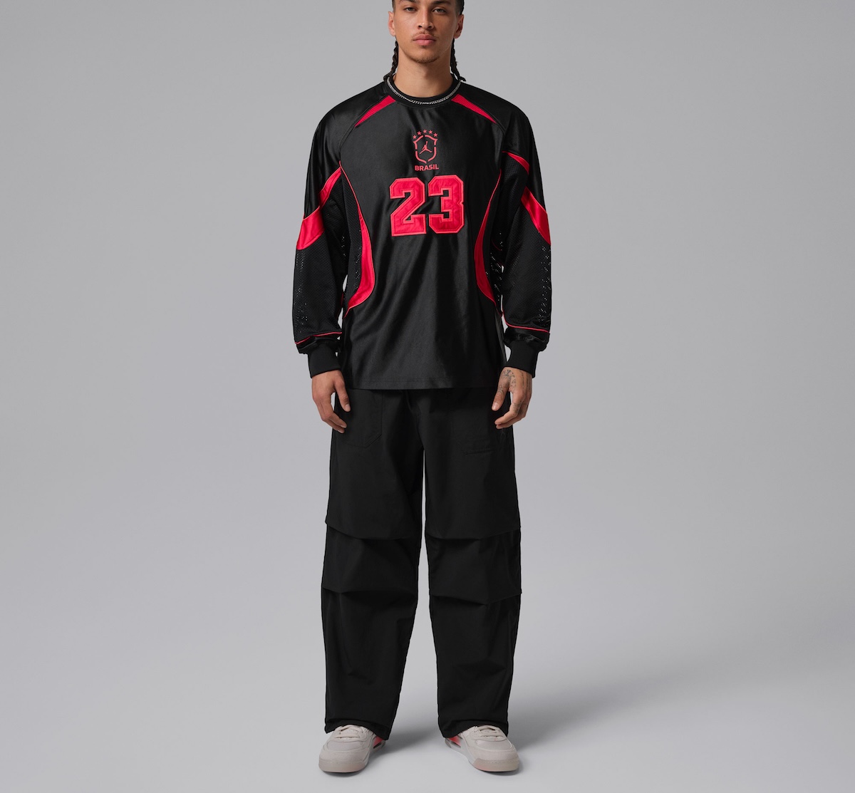 The black and red palette subtly recalls Chicago heritage while fitting Brazil’s bold visual identity. Hoodies and mesh shorts add character by swapping the “A” in “Brasil” with the Jumpman, a graphic move that reads confident and controlled.