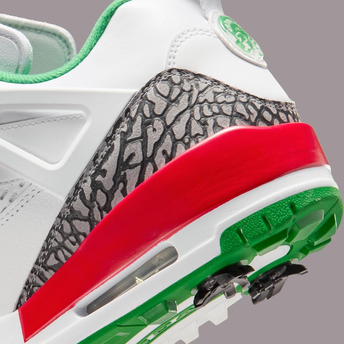 The familiar upper remains intact, while the outsole shifts to a spikeless traction pattern built for balance and control. That approach mirrors how Jordan has evolved its golf footwear without losing visual credibility.