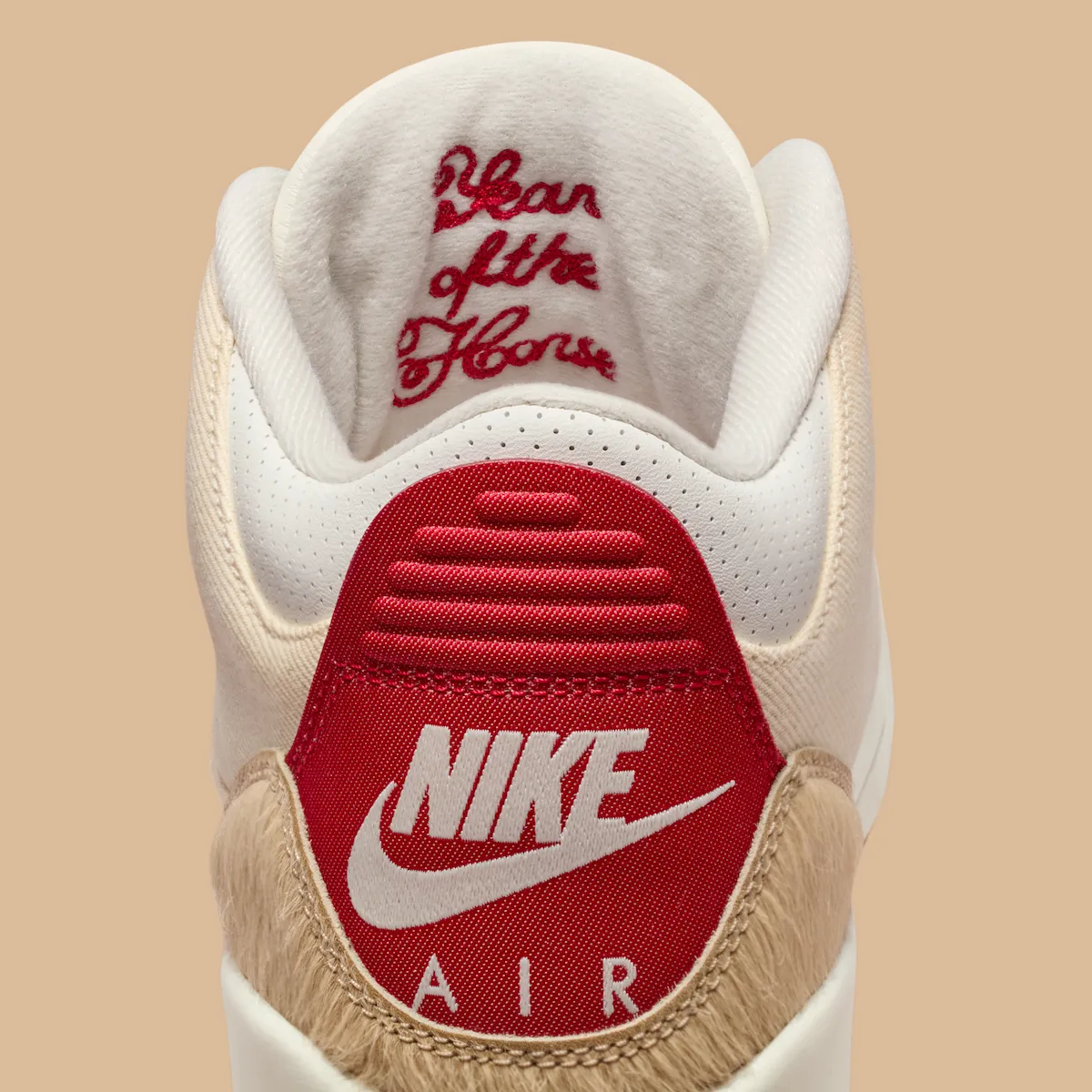 This is the first numbered Air Jordan retro to be part of Jordan Brand’s Lunar New Year collection. Past sneakers from the series have been lifestyle shoes. It makes sense for a Year of the Horse theme to be shared on such an iconic silhouette as the Air Jordan 3.