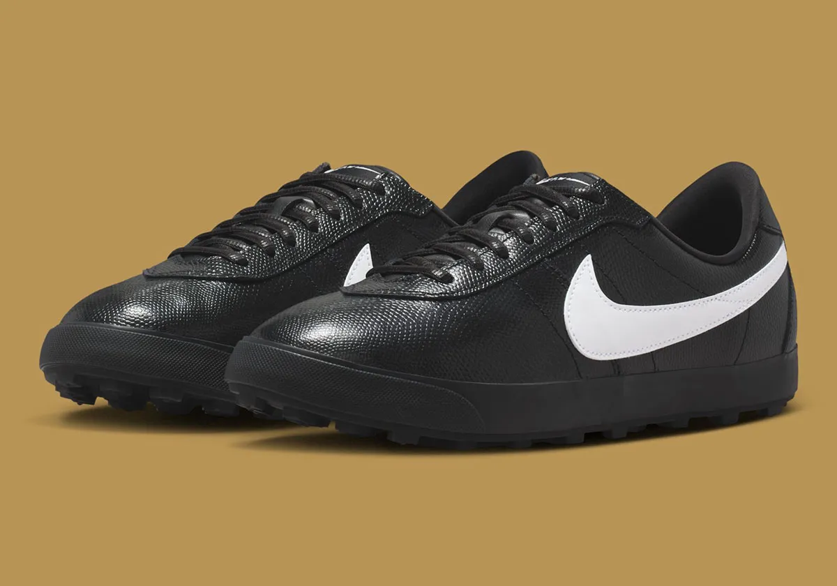 Since August of 2025, we’ve been slowly unraveling a collection of “Morse Code” Nike lifestyle sneakers, each featuring dashes and dots that spell out “Nike” paired with mostly earth-toned colorways. Following Cortez, Killshot II, and Air Force 1 styles among a handful of others, we’ve uncovered a black and white Astrograbber featuring gold Morse code branding at the heel. Pebbled black leather makes up essentially the entire upper, save for plain white leather on the Swooshes. We’re getting a slight Bode Astrograbber sort of vibe, although this in-house style doesn’t promise the same top-notch material quality as that 2024 collab.