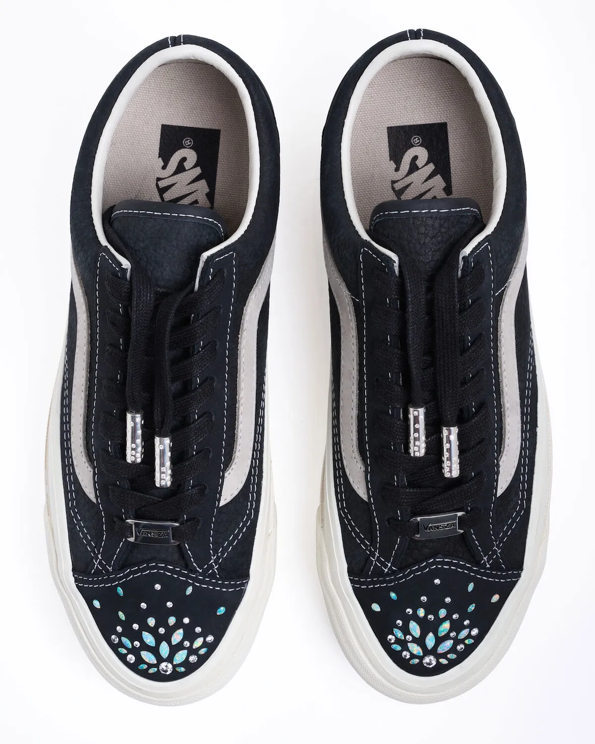 Beyond the Ladybug Garden pair, SZA commissioned four additional customs. Three Old Skools and another Authentic continue the gem-heavy theme. Each pair treats Vans silhouettes like wearable art rather than street staples.